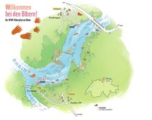 Tafeln mit spannenden Informationen und Rätseln, interaktive Elemente für Kinder, Nagespuren an Bäumen und Fussspuren am Boden warten darauf, von Ihnen entdeckt zu werden. Lernen Sie den Biber und seinen Lebensraum kennen und lieben!