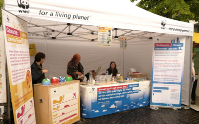 Am Zürcher Umwelttag vom 20. Juni präsentieren der WWF Zürich und der Schweizerische Versicherungsverband einen gemeinsamen Klimastand mit Wasserdegustation. 240 Personen probieren Leitungs- und Mineralwasser und erfahren dabei, wie viel schlechter die Ökobilanz von Wasser in PET-Flaschen im Vergleich zu Hahnenwasser ausfällt. Der WWF Zürich ist jedes Jahr an verschiedenen Anlässen präsent, um die Bevölkerung wirksam für Natur- und Umweltthemen zu sensibilisieren.